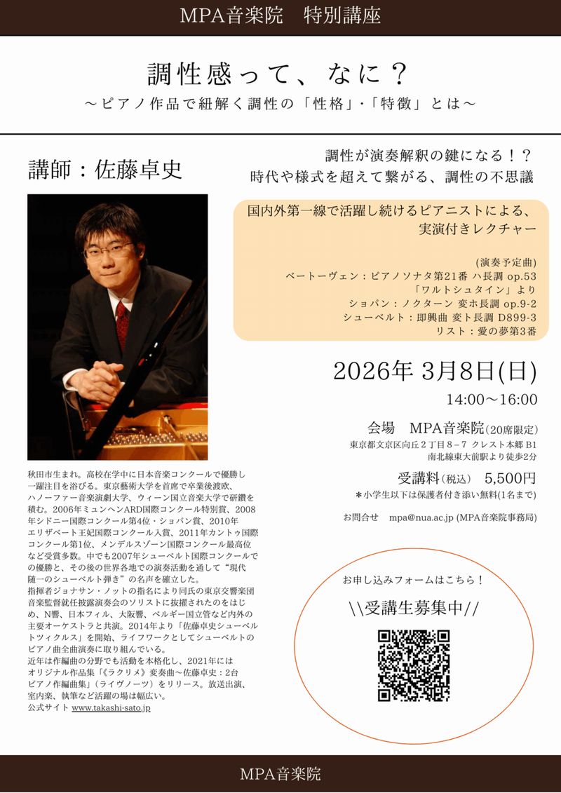 OCCAワンコイン市民コンサート 佐藤卓史ピアノ・リサイタル シューベルト補筆完成の諸相
